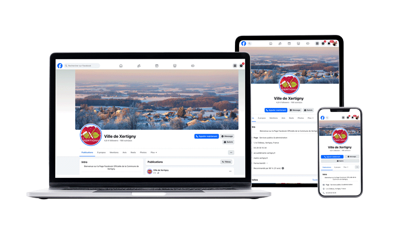 La page Facebook de la Ville de Xertigny compte une communauté de 4 600 abonnés qui suivent chaque jour les actualités de notre ville.
